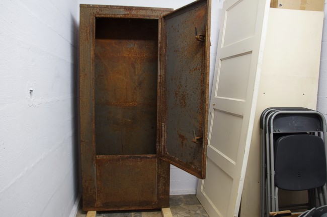 Schrank für Gasverseugte Kleidung. Beetje roestig maar niet verrot.
