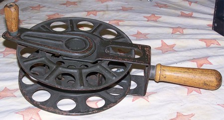 De haak zelf heeft een klein passing zodat hij op een lange stok gestoken kon worden. De krulletjes onderin