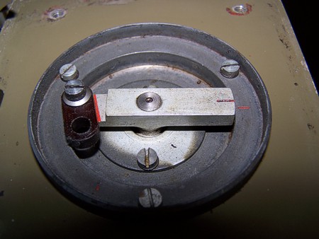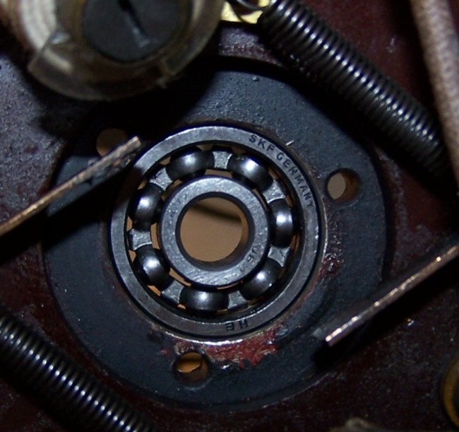 De motor is met een bakelieten demper mechanisch aan de onderkast gekoppeld. Als de rode merkjes op de juiste