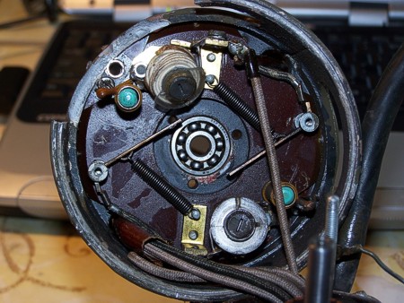 In de motor zitten diverse kleine spoelen. Bovenin ziet u een afgebroken exemplaar.