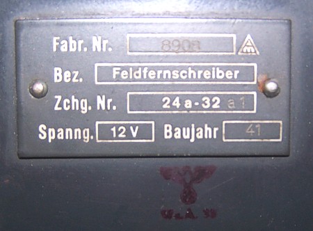Het typeplaatje met daaronder een WaA stempeltje.