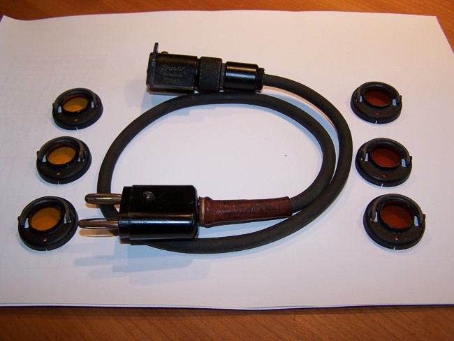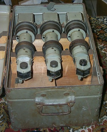 In de kist zitten vijf goed werkende verlichtingssetjes voor Duits optiek (foto