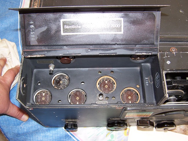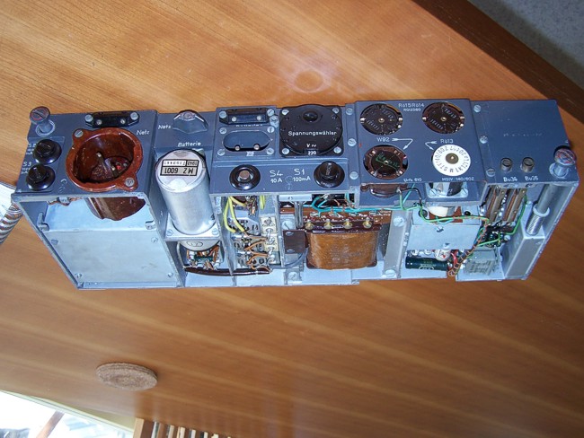 Het compartiment voor de electronenbuizen. Ze zitten ondersteboven in de buisvoeten, dus