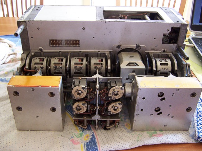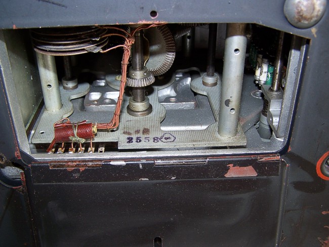 Afstemfilters werden toen nog mechanisch ingesteld, hier met een worm en wormwiel.