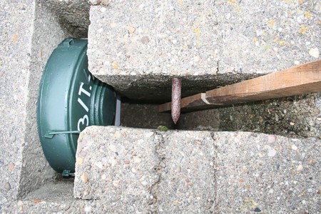 De landingsboot vaart tegen de staaf, het dunne stangetje dat los in het beton is gegoten, breekt en de tankmijn ontploft.