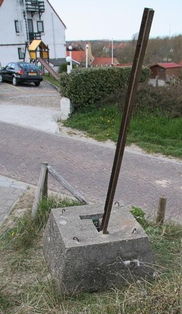 De mijn is geplaatst en de stang is aangebracht. Deze opstelling geeft een goede voorstelling van de werking en