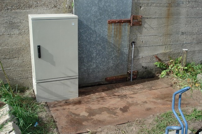 doorvoer voor de telefoonveldkabel. Deze werd gebruikt voor de aansluiting van