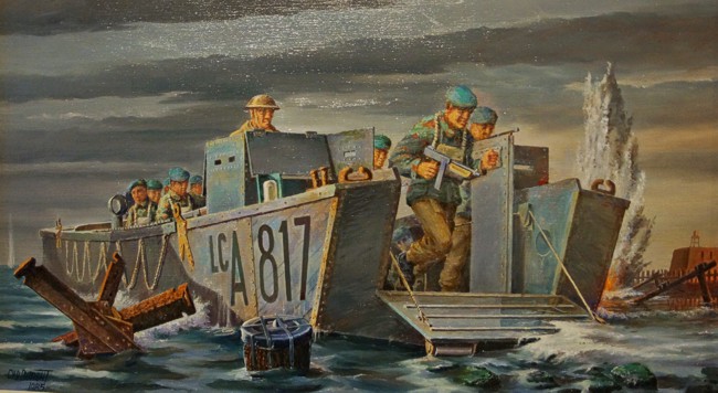 Landingsvaartuig bij de Oranjemolen. De bestuurder is