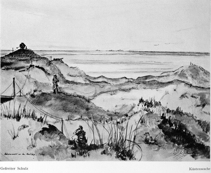 Onderstaande tekening komt uit een bundel van Gefreiter Schulz met meer gezichten op Zeeland.