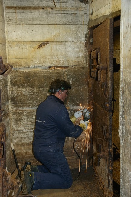 De scharnierogen aan de frames van de pantserdeuren moesten worden opengeslepen