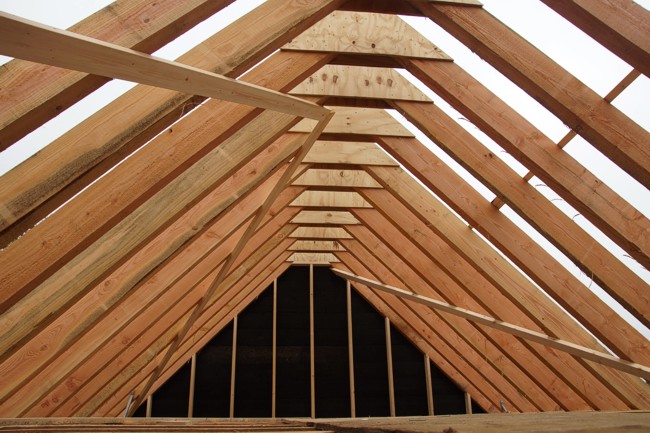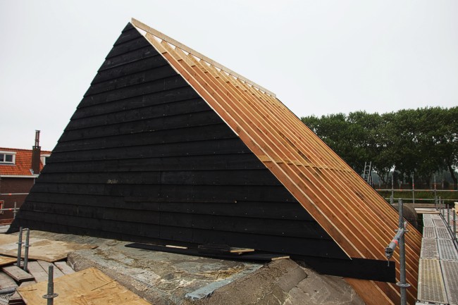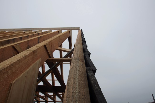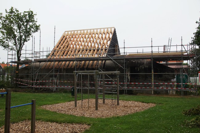 De dakspanten zijn geplaatst.