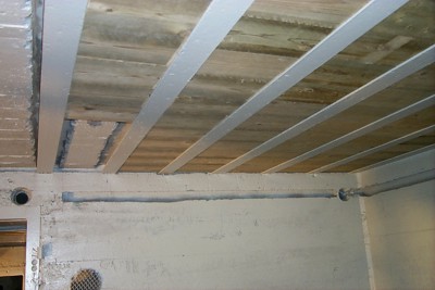 de plafonds. Ze worden op lengte afgekort en de eindjes die in de I-profielen vallen, worden wat afgeschuind.