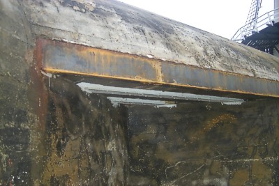 De originele buizen waren door roest, op het raakvlak met het beton, volledig afgebroken.