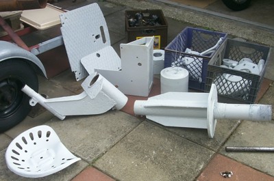 De eerste onderdelen zijn afgevinkt als "gereed". Ze zijn gestraald en van drie verflagen voorzien.