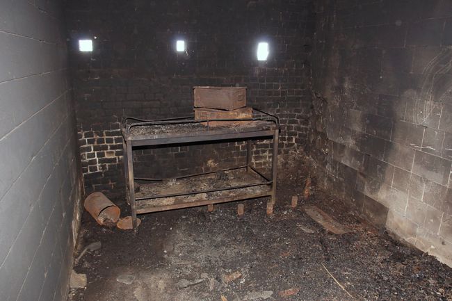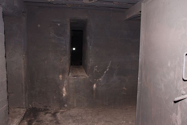 De ruimte waar het kanon stond is opgedeeld. Let op de bouten voor het