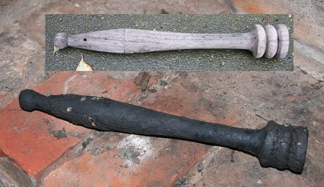 Het zou een vaatkwast kunnen zijn. Rond de ringen rechts werden lappen stof
