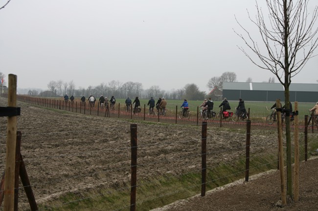 Stalknecht, achterop, testen samen het nieuwe fietspad.