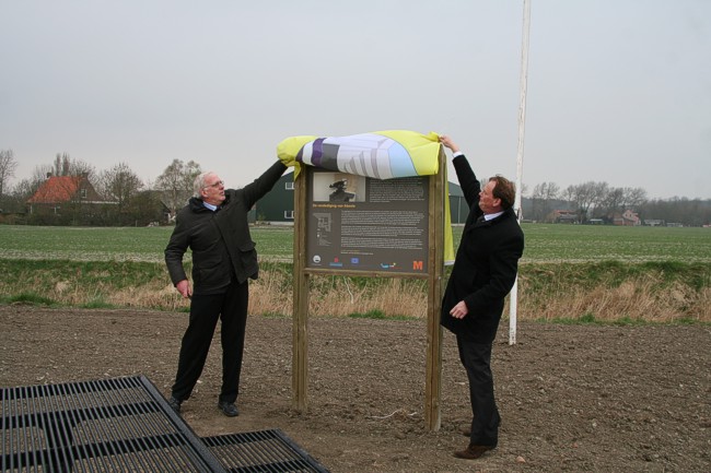 De wethouder en onze voorzitter onthullen eensgezind het paneel.