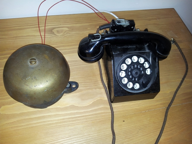 Oude Duitse techniek werkend op moderne telecommunicatie.