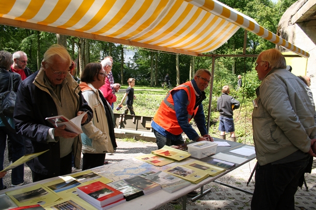 De eerste bezoekers in en om de informatiestand.