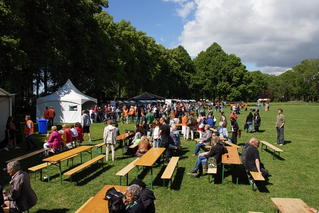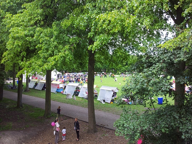 Het grote grasveld vol met kraampjes straalde gezelligheid uit.