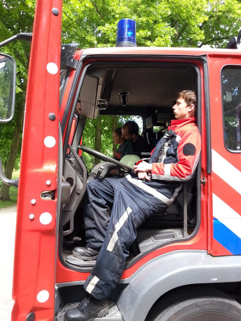 "Hé Bert ... Een grote rooie brandweerauto."