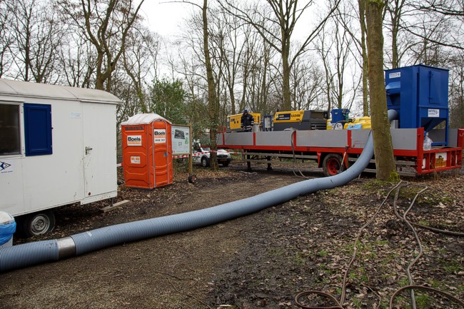De start van het stralen van de bunker.