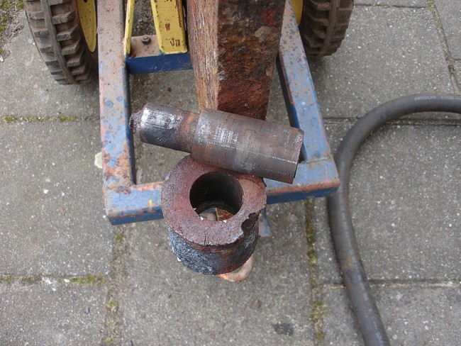 Van de gepantserde onderdeur moesten de scharnierpennen nog verwijderd worden.