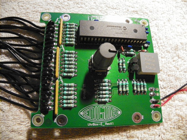 De nieuw gebouwde E-Enigma, de Uhrbox-E is aangesloten. Alles werkt naar