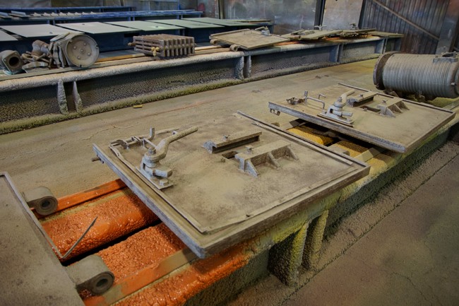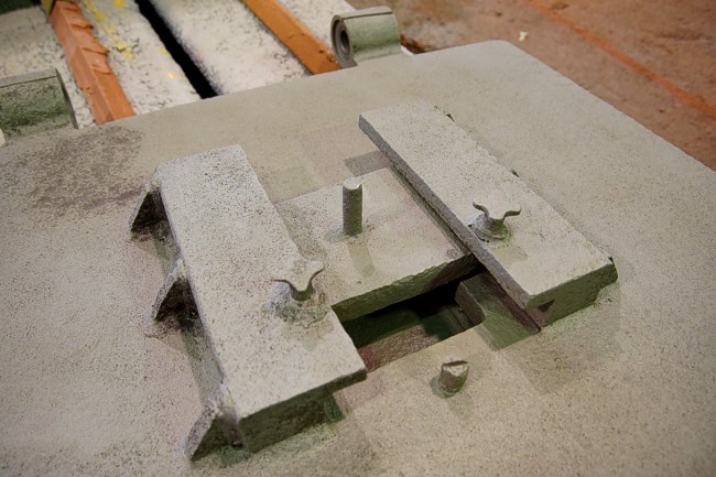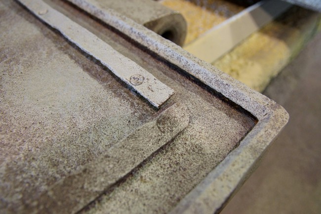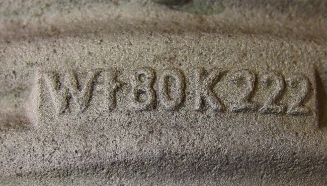 Een nu zichtbaar gemaakt logo op een bunkerkachel.