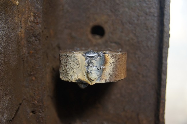Dan wordt de slijpnaad electrisch dichtgelast.