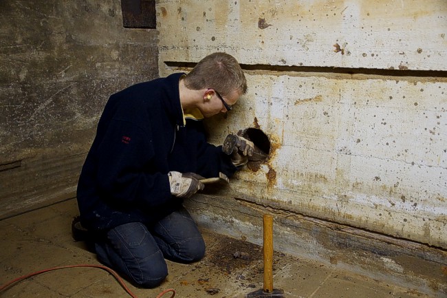 staalresten in de muren worden verwijderd.