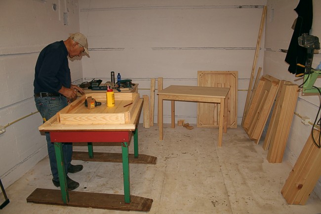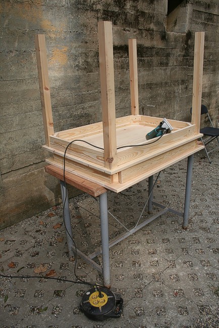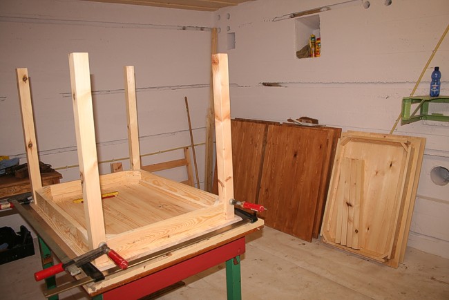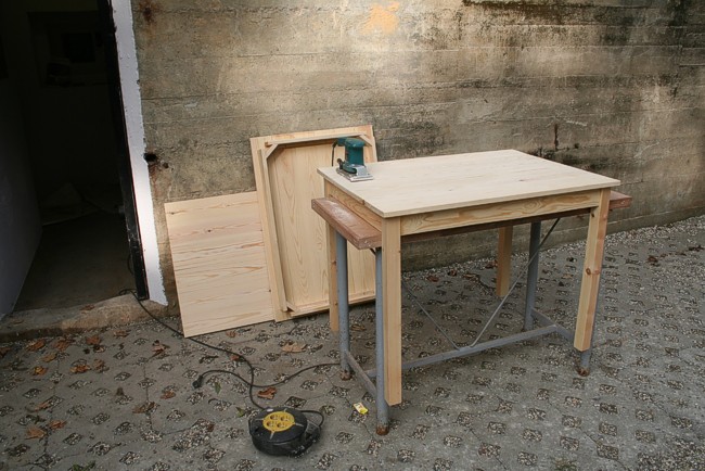 Een werktafel is klaar en het tweede blad ligt te wachten.