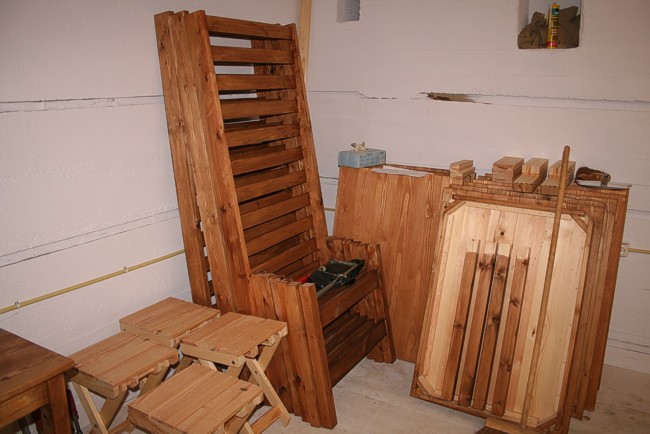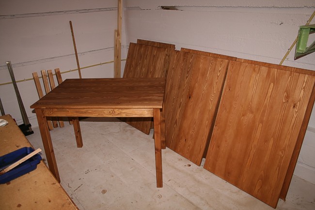 De eerste werktafels staan in de beits.