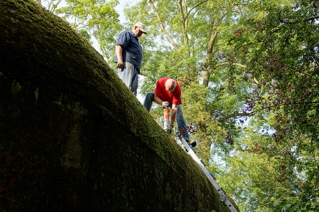 Deze bezoeker inspecteert de boor.