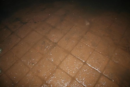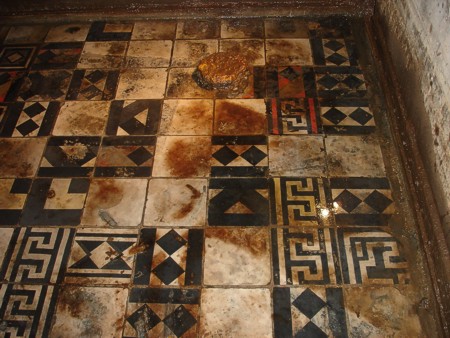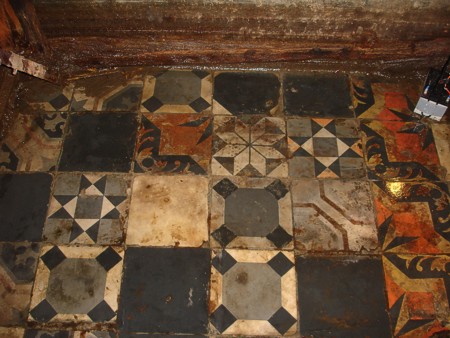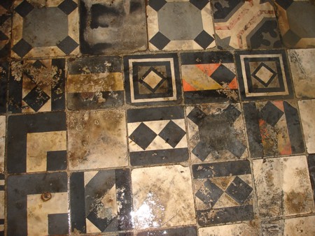 De vloer is, zo blijkt, volkomen willekeurig met afwijkende tegels belegd.