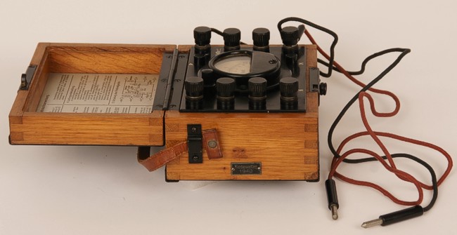 Als voorbeeld dient deze Duitse universeelmeter, het Feldmesskästchen. Werkend