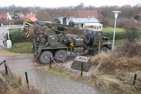 Dat zijn allemaal zware voorwerpen dus kwam het Belgische Leger met indrukwekkend materieel.