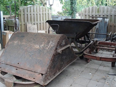 We bezitten echte kipkarretjes voor het transport van zand en grint.