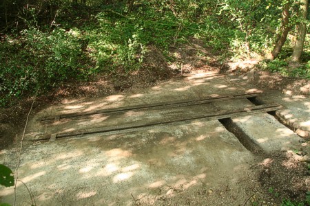 (de welen), ligt dit betonnen plateau. Hierop hebben grote pompen gestaan die