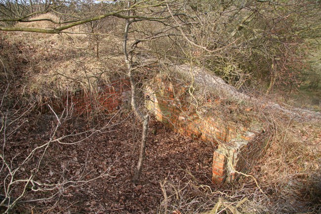In de duinen liggen resten van een lichte luchtdoelbatterij en wat metselwerk.