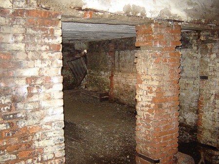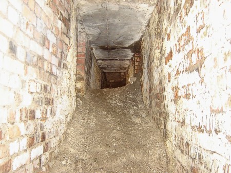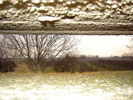 De gang gezien vanuit de uitkijkpost. Ook aan deze zijde zit een kijksleuf.