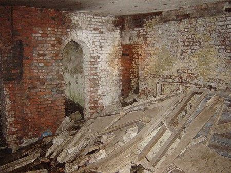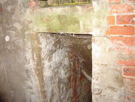 Eén doorgang heeft een mooi gemetseld boogje. Daarnaast is de gang naar de uitkijkpost.