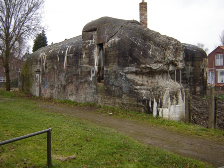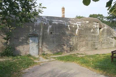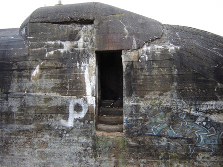 De bunker had ooit een heus puntdak. In 2014 wordt een replica teruggeplaatst.