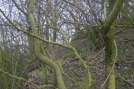 Slechts een stukje van de scherfmuur is zichtbaar.