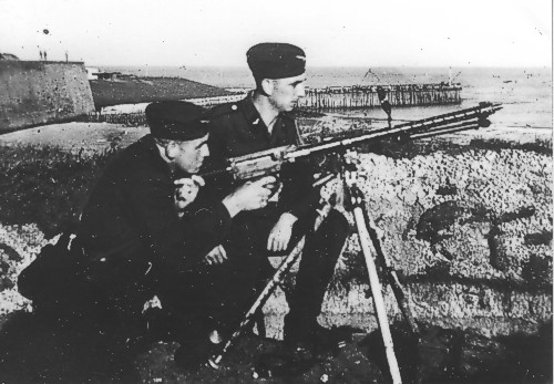 De ingang van de "Vissershaven" was de westelijke grens. Achter de kustlijn liggen enige schuilkelders.