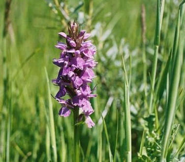 Op zoek naar grijs beton valt ons oog ook op kleurrijke zaken, zoals deze Dactylorhiza majalis-praetermissa, de rietorchis.