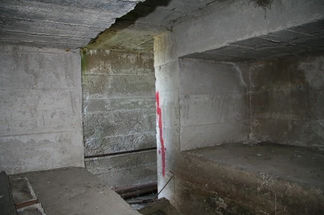 Binnen blijkt dat hij volledig gestort is en verschillende nissen heeft.