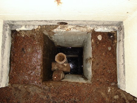 De bron werd geboord nadat de bunker was gestort. Het gat voor de boor is later dichtgemaakt.