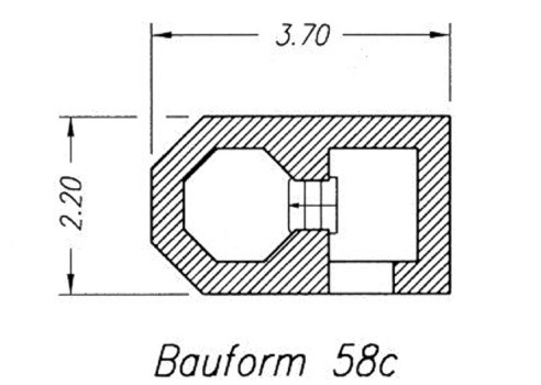 waarbij onze opmetingen als bron zijn gebruikt. Let op het gebogen profiel van het pantserstalen dak.